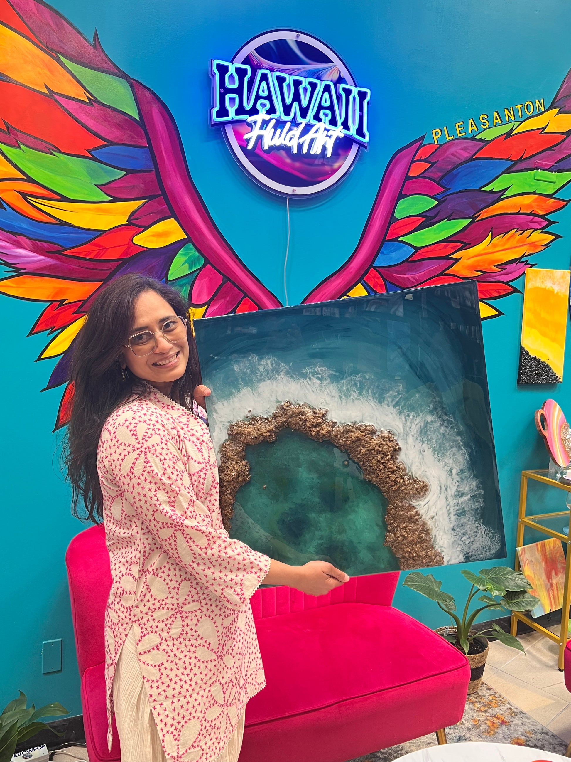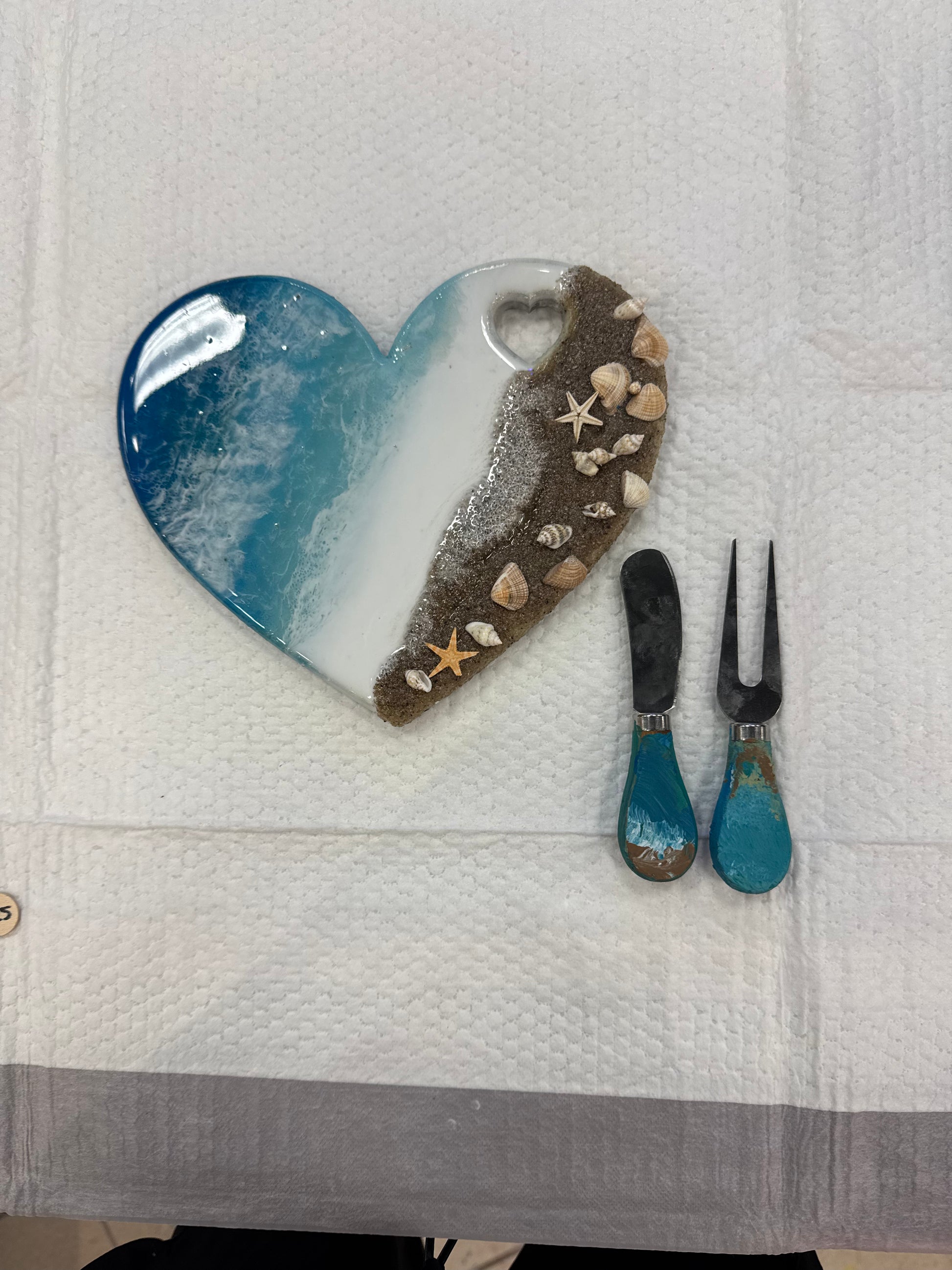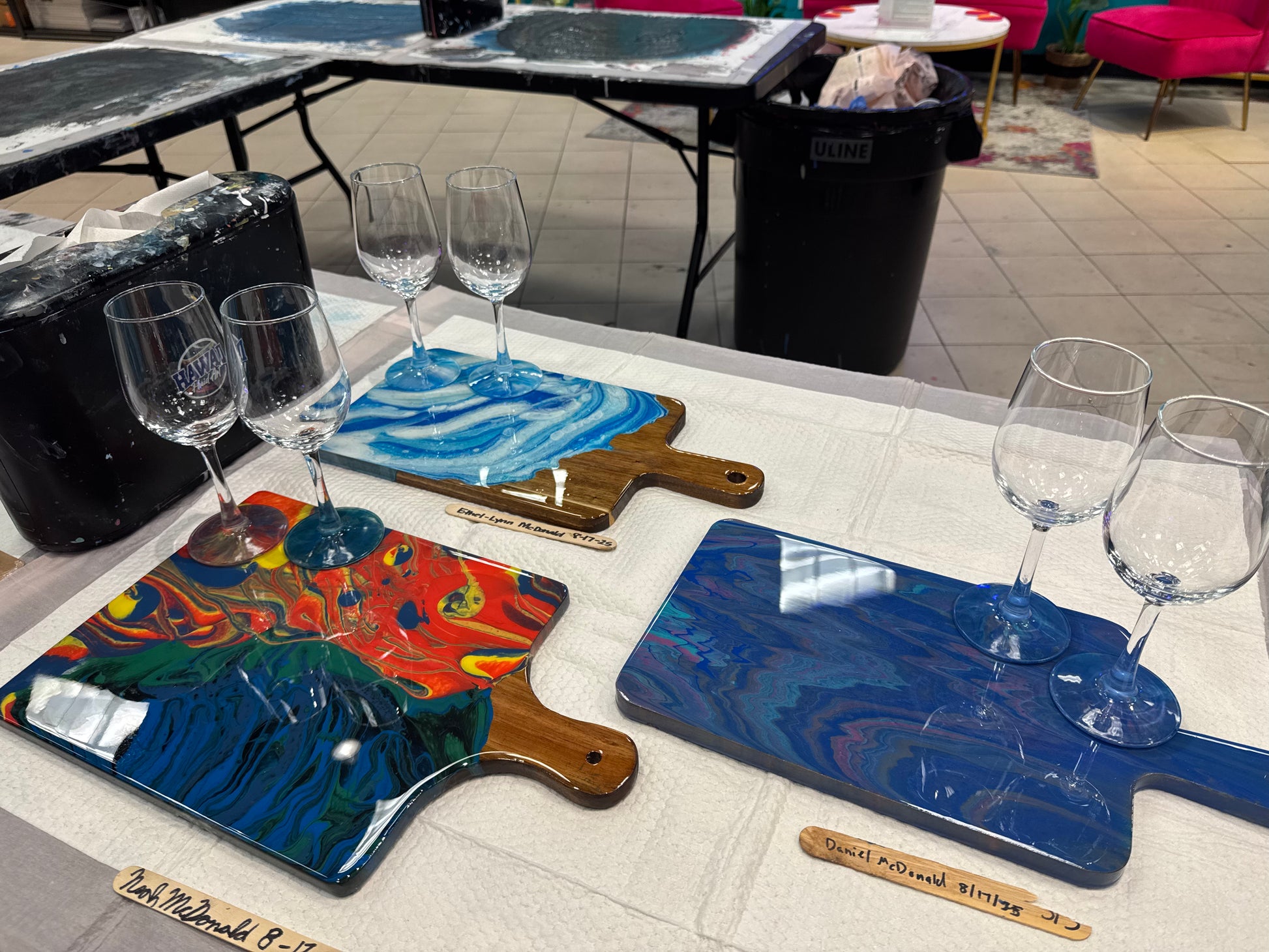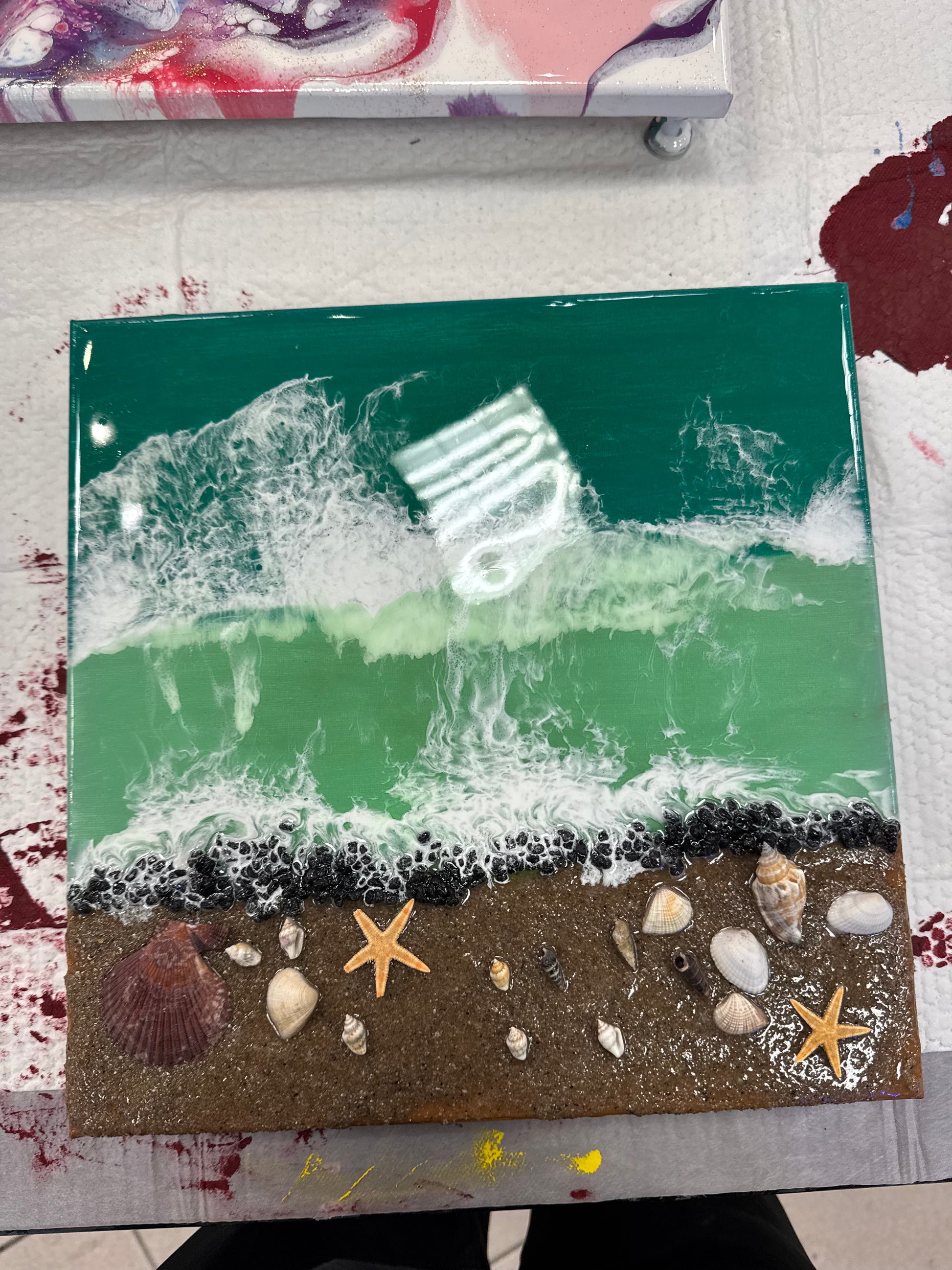 Design a beautiful 10x20 resin beach scene using ocean-inspired colors, waves, and textures. No experience needed—our instructors guide you step-by-step so you can relax, laugh, and enjoy the process together.